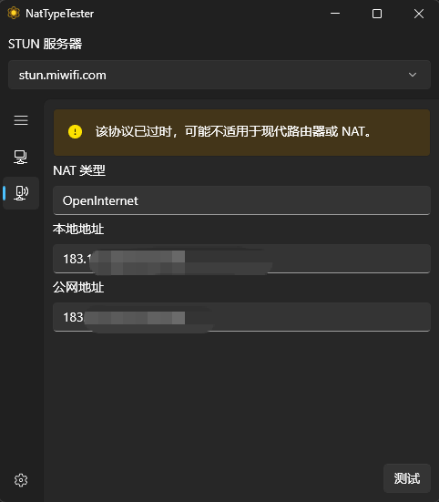 完成以上设置后,再次使用NatTypeTester工具,按照相同步骤进行测试。此方法通常可将NAT类型降低至“NAT1 全锥型NAT(Full Cone NAT)”。