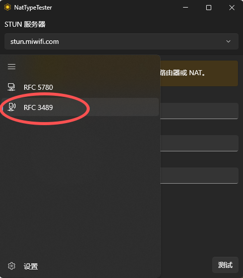 打开工具后,在左侧栏选择“RFC 3489”选项。