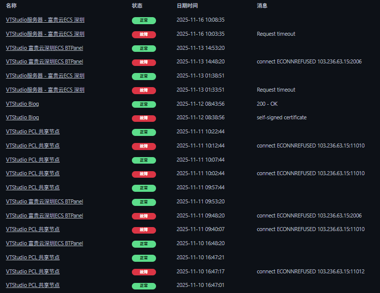 VTStudio的服务器因此受到DDoS攻击多次进入黑洞,信息来源:VTStudio Service Status